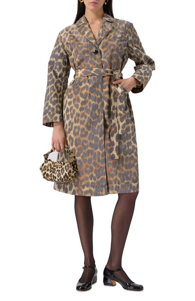 Однобортный плащ Ginevra с крупным контрастным принтом The Bay сшили из гладкого полиэстера. Модель с длинной шлицей сзади дополнили прорезными боковыми карманами.