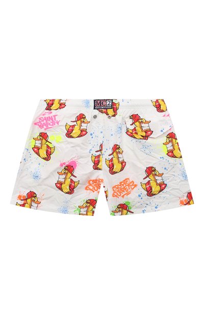 Плавки-шорты Mkenm из серии Mini Me выполнили из переработанного полиэстера. Модель с эластичным поясом-кулиской и тремя карманами украсили глянцевым логотипом бренда.