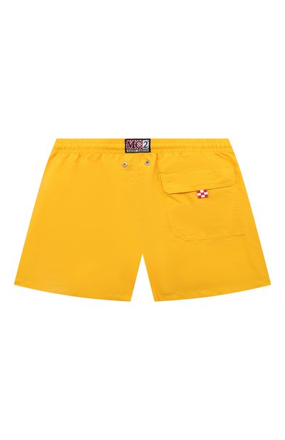 Плавки-шорты Mkenm с поясом-кулиской, накладным и двумя врезными карманами сшили из быстросохнущего переработанного полиэстера. Модель из коллекции Mini Me украсили спереди глянцевым логотипом бренда.