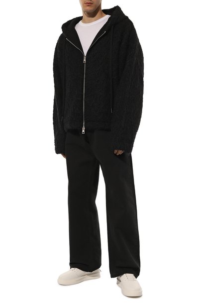 Кеды Milan на широкой подошве в тон сшили из гладкой кожи, а внутреннюю отделку выполнили из текстиля. Язычок с брендированной нашивкой и берцы с логотипом марки подчеркнули перфорацией.