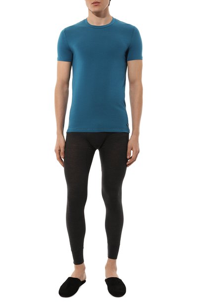 Футболку с круглой горловиной сшили из фактурного стрейчевого трикотажа оттоман на основе модала. Модель украсили спереди небольшим логотипом, вышитым нитью в тон.