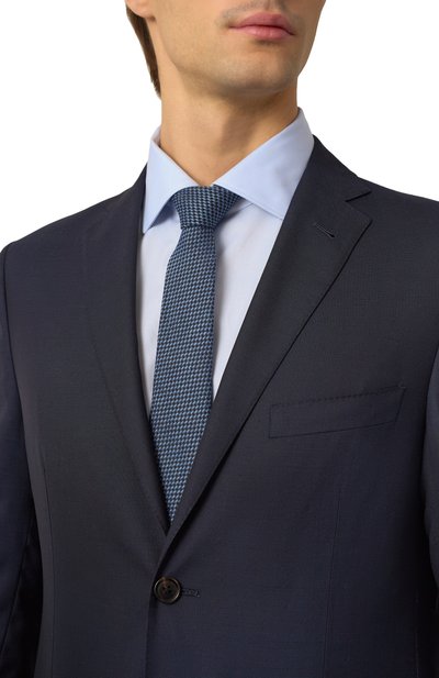 Галстук с фактурным жаккардовым узором, напоминающим плетение, выполнили из ткани на основе шелка и льна. Длины аксессуара хватит, чтобы завязать двойной узел.