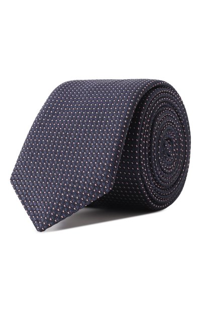 Узкий галстук с геометрическим микроузором сшили из фактурного жаккарда на основе шелка с добавлением полиэстера. Благодаря увеличенной длине аксессуар подходит для мужчин высокого роста.
