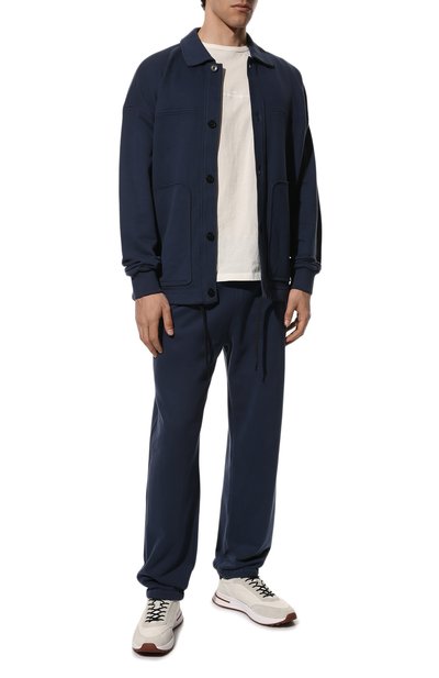 Джоггеры из коллаборации с Porsche сшили из трикотажа на основе полиамида и хлопка. Брюки с широким поясом-кулиской и тремя врезными карманами украсили прорезиненными логотипами брендов сбоку.