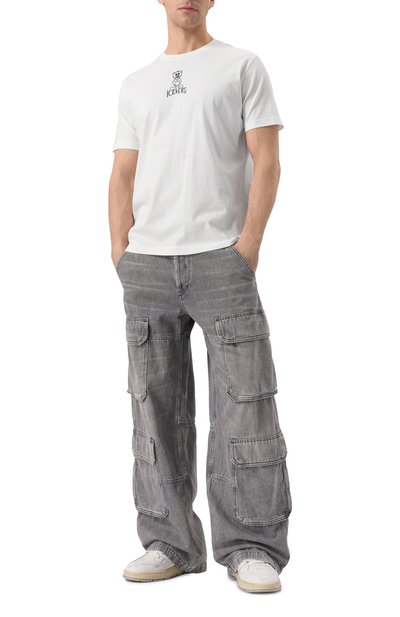 Футболку прямого кроя сшили из хлопкового трикотажа. Модель с круглым вырезом украсили спереди контрастным логотипом бренда. Изделие органично впишется в повседневный гардероб.