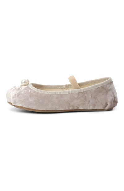 Балетки Zelda с отделкой из репсовой ленты по краю и из гладкой кожи внутри сшили из полиэстерового бархата. Модель с эластичной перемычкой, на тонкой резиновой подошве украсили перламутровыми бусинами на союзке.