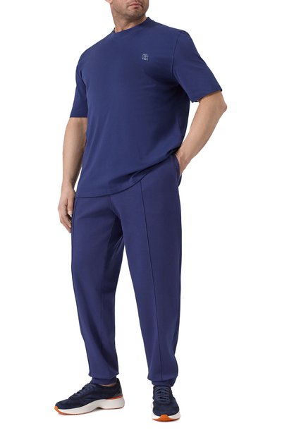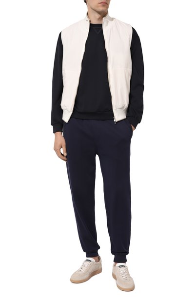 Джоггеры из хлопкового футера с флисовой изнанкой вошли в коллекцию Travelwear. Модель с прошитыми стрелками и молниями на брючинах дополнили задними и боковыми карманами с контрастной отделкой.