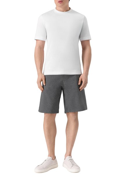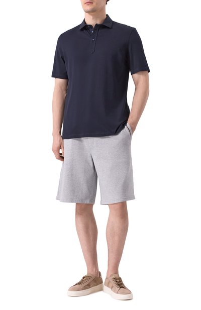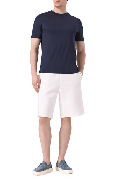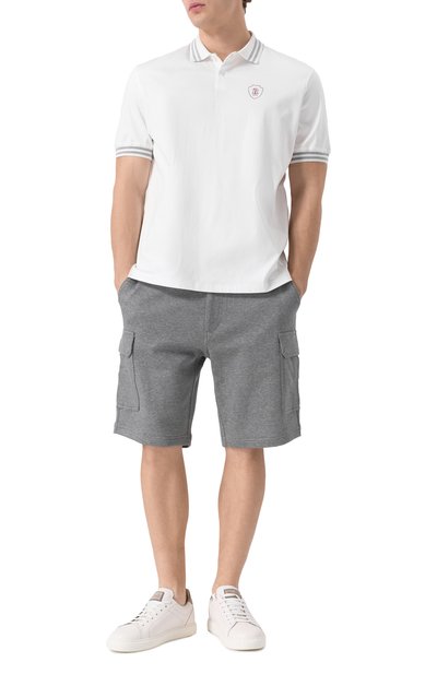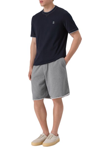Бермуды из хлопкового футера вошли в коллекцию Travelwear. Модель с контрастной отделкой дополнили поясом-кулиской в рубчик, боковыми и задними прорезными карманами.