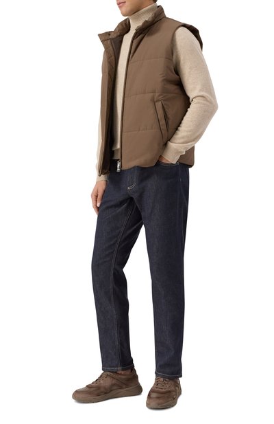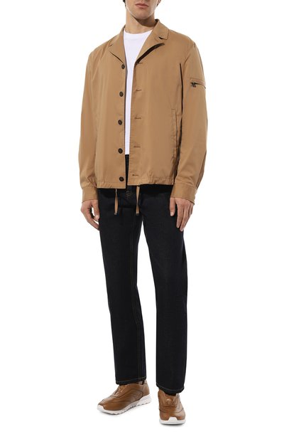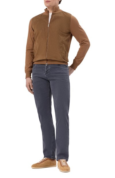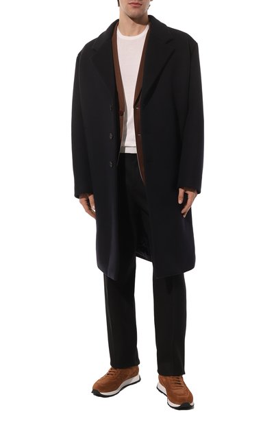 Кроссовки на широкой подошве сшили из телячьей кожи и стираной замши. Модель с эмблемой Solomeo на язычке украсили брендированной петлей на заднике и логотипом на пяточном стабилизаторе.