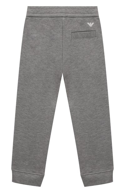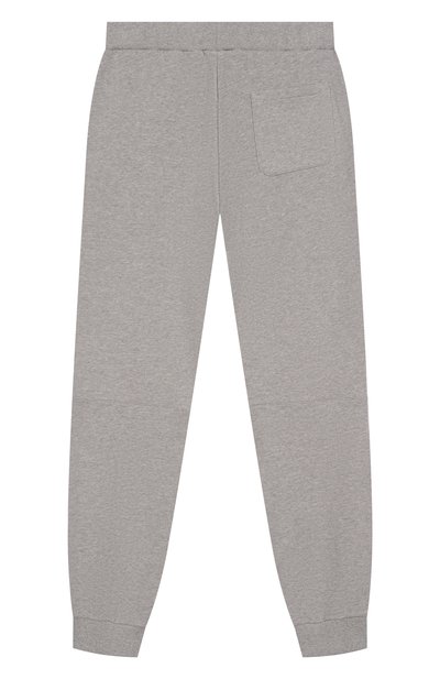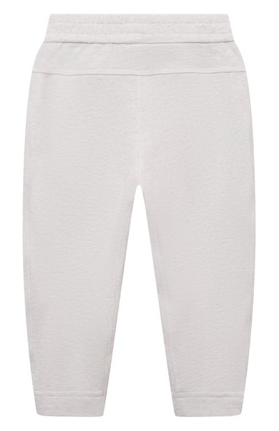 Джоггеры выполнили из эластичного микса модала и хлопка. Полосы на манжетах поддержали вязаными эглетами шнура, продетого в кулиску на поясе. Помимо боковых карманов предусмотрели и задний, рядом с которым расположили брендированный патч.
