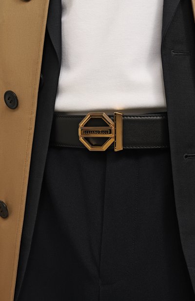 Ремень дополнили золотистой кобурной пряжкой, в которую вписали эмблему Royal Eagle. Для изготовления аксессуара средней ширины использовали крупнозернистую матовую кожу.