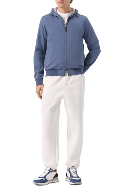Бомбер из коллекции Save the Sea сшили из ткани Re-130 High Density на основе полиэстера с добавлением нейлона. Модель с внутренним карманом дополнили двумя внешними, один из которых украсили брендированным ярлыком, а на спинке разместили петлю Shark Fin.