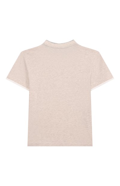Футболка из меланжевого трикотажа на основе хлопка и льна органично впишется в летний базовый гардероб. Единственный декор модели — вышитая аббревиатура внизу.