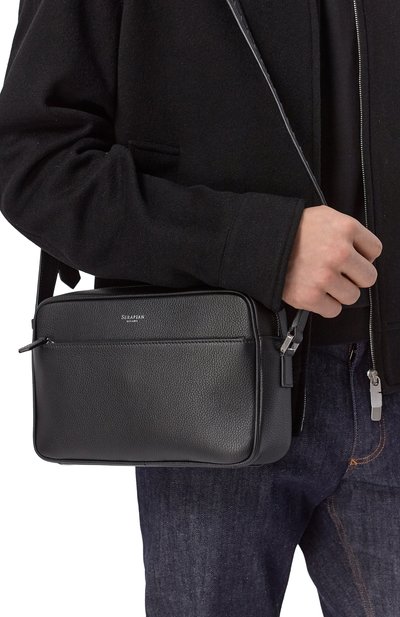 Поясную сумку с регулируемым ремнем дополнили внутренним и внешним карманами на молниях. Аксессуар из крупнозернистой кожи украсили стежками фирменного алого оттенка и нашивкой с тисненым логотипом в тон.