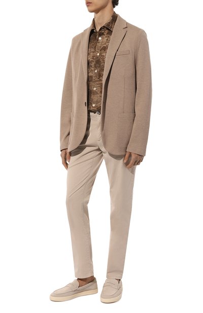 Джинсы кроя Regular fit удачно впишутся в базовый гардероб. Для пошива модели с пятью карманами использовали слегка эластичный деним из хлопка и льна. На принадлежность марке указывают брендированный патч сзади на поясе и фирменная красная точка на одной из шлевок.