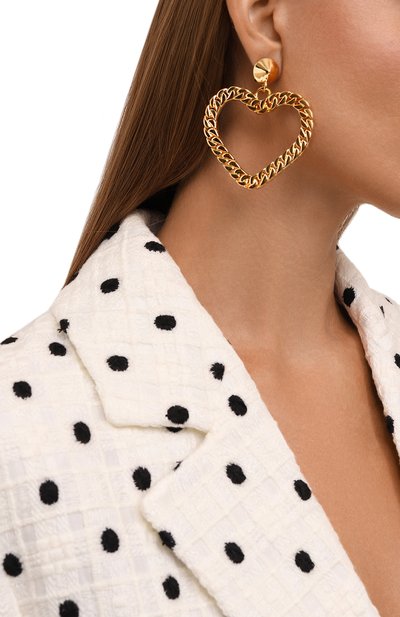Клипсы с отделкой из позолоченной латуни декорировали на круглом основании кабошоном из эпоксидной смолы, напоминающей натуральный перламутр. Из такого же материала выполнили крупную фигурную подвеску.