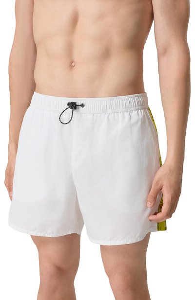 Для пошива плавок-шортов Dodo с тремя карманами использовали быстросохнущую ткань на основе полиэстера из переработанных пластиковых отходов. Модель с брендированным шнуром в поясе-кулиске декорировали сбоку нашивкой с рельефным серебристым логотипом.