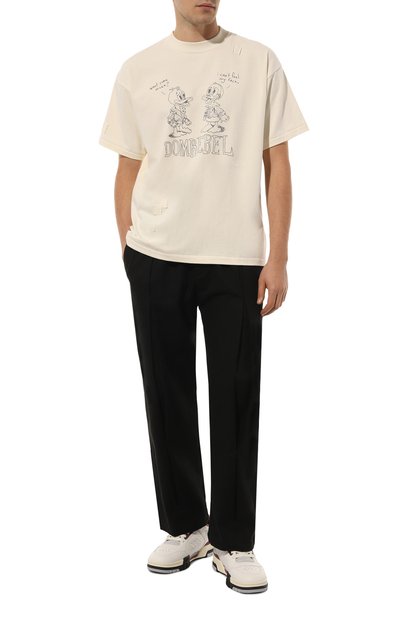 Для изготовления модели с горловиной в мелкий рубчик выполнили из хлопкового джерси. Футболка с крупным брендированным рисунком спереди и чуть меньше сзади впишется в непринужденный повседневный образ.