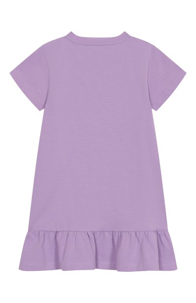 Платье-футболку с отворотами на рукавах сшили из джерси стрейч на основе полиэстера. Модель с ребристой горловиной украсили изображением Medusa mug из разноцветных кристаллов.