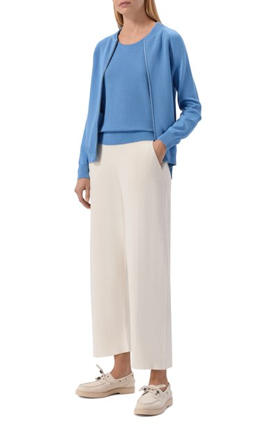 Майку из шерстяного трикотажа в рубчик дополнили более темным кантом на вырезе и планкой с пуговицами. Принадлежность модели бренду обозначили золотистой монограммой CC на спинке.