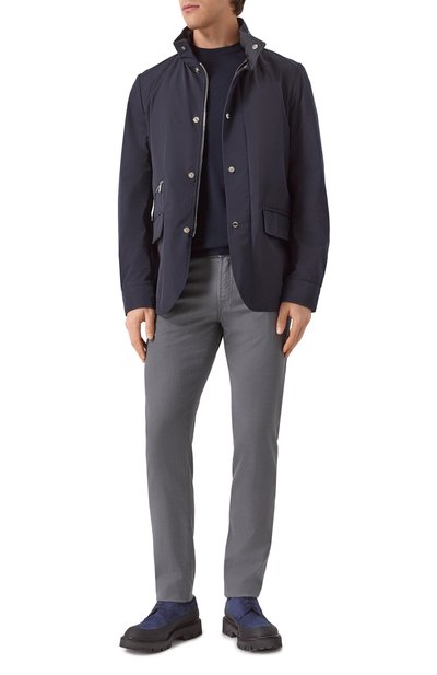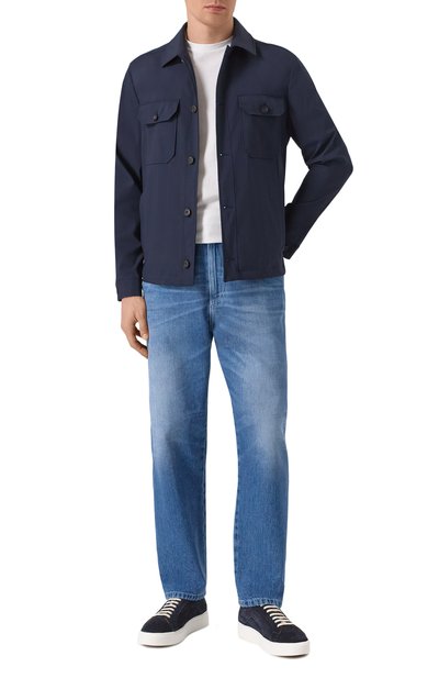 Куртка-рубашка ADE-AC из стрейчевого нейлона застегивается брендированными роговыми пуговицами. Модель с регулируемыми манжетами дополнили внутренним карманом, а также двумя нагрудными с клапанами и парой боковых, один из которых украсили фирменной нашивкой.