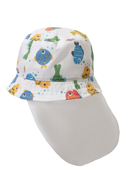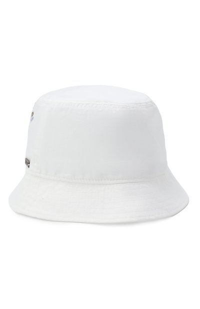 Для пошива панамы с контрастными стегаными полями использовали хлопковую ткань. Высокую тулью украсили серебристой подвеской-сердцем с логотипом и принтом в виде зверят на мопеде.