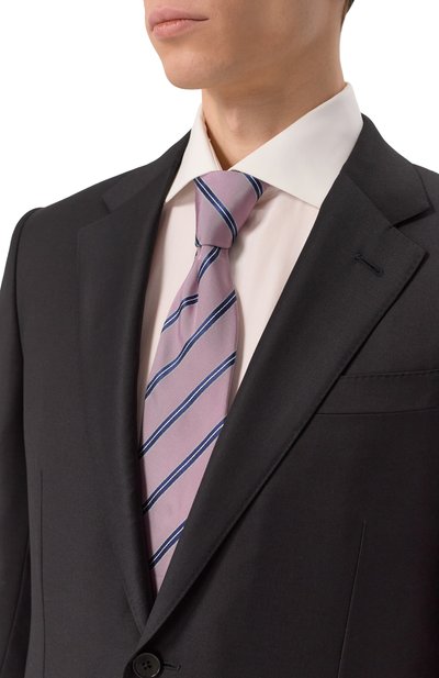 Аксессуар из шелкового жаккарда легко драпируется и не перекручивается. Галстук в диагональную полоску будет органично смотреться с однотонными рубашками и деловым костюмом.