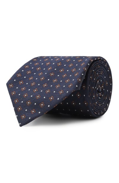 Галстук с цветочным паттерном изготовили из плотного шелкового жаккарда, который быстро восстанавливает первоначальную форму. Аксессуар легко драпируется и не перекручивается в узле.
