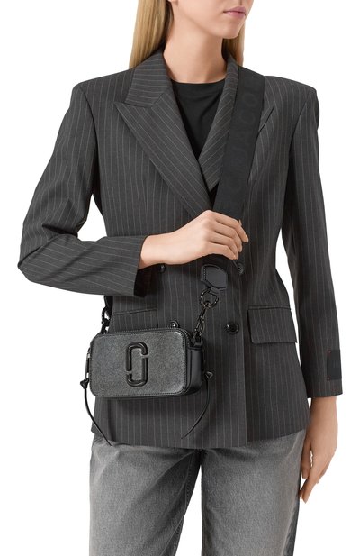 Сумк у The Big Shot из металлизированной кожи с эффектом кракелюра дополнили плечевым ремнем с массивными цепочками. Модель с крупной пряжкой J Marc спереди застегивается встречной молнией. Внутри предусмотрели карман с молнией, а на задней панели – плоский накладной.