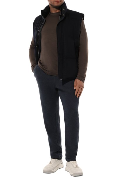 Брюки с широким поясом-кулиской выполнены из эластичного хлопкового трикотажа с добавлением полиэстера и полиамида. Модель с тремя врезными карманами украшена брендированным патчем сбоку.