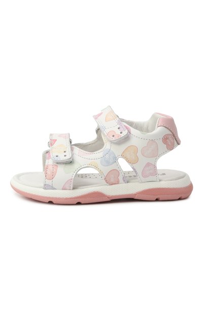 Сандалии Mariss на гибкой подошве с анатомической стелькой и рифленым протектором сшили из мягкой кожи. Цвет горохового паттерна поддержали накладками в виде ягод на двух регулируемых ремешках велкро.