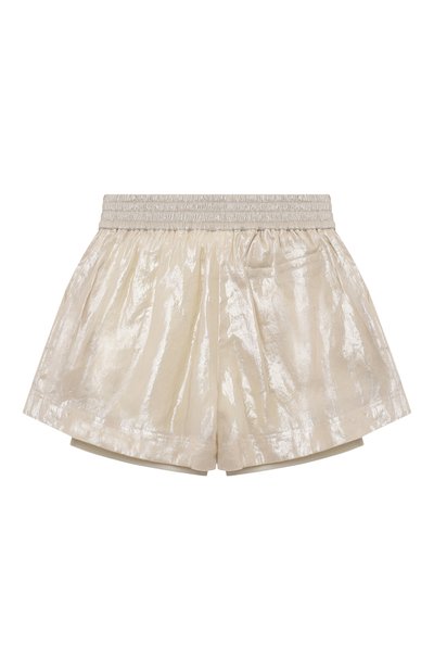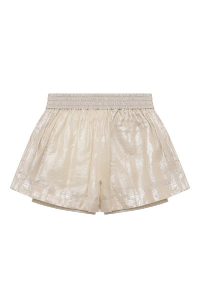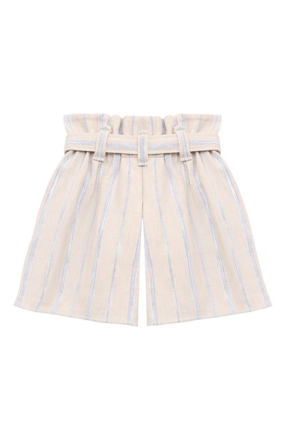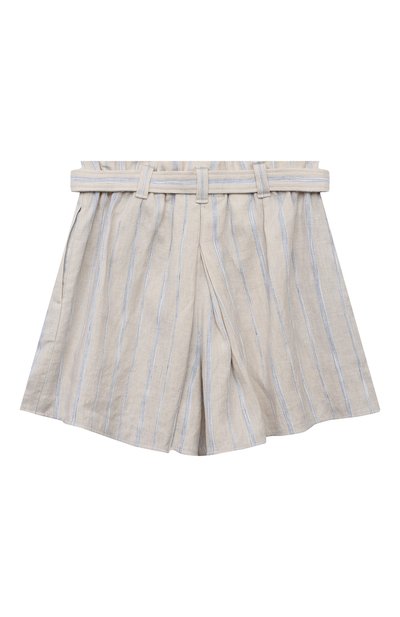 Шорты с эластичным поясом и контрастными отворотами станут комфортной основой летнего образа. Для пошива модели с четырьмя карманами использовали лен с добавлением вискозы. Из этой же ткани выполнен пояс с двойной пряжкой.