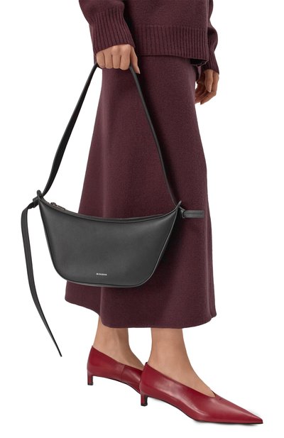 Сумка Knot из телячьей кожи марки обязана своим названием узлам на основаниях длинной ручки. Аксессуар с фольгированным логотипом, как и внутренний карман, застегивается молнией.