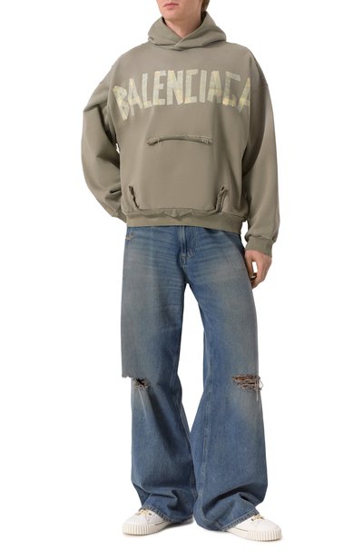 Кашемировое худи дополнили вставкой под горловиной, манжетами и поясом в рубчик. Oversize-модель составит гармоничный дуэт с парными брюками.