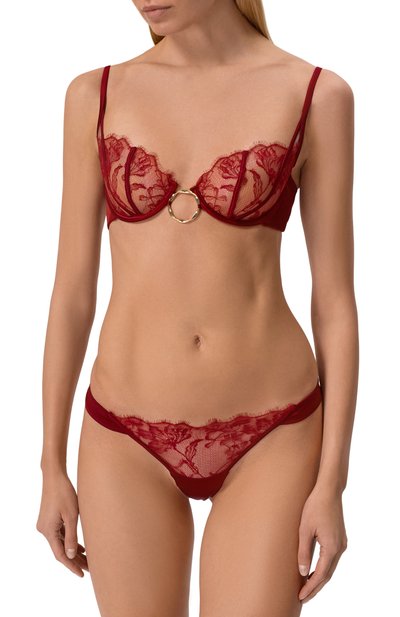 Стринги Tierra выполнили из тюля Bespoke с вышивкой и полупрозрачного тюля. Эластичные атласные ремешки регулируются слайдерами с покрытием 24-каратным золотом.
