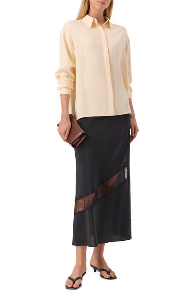 Блузу Banora с воротником «мандарин» и неглубоким V-образным вырезом выполнили из шелка с добавлением эластана. Модель дополнили супатной застежкой.