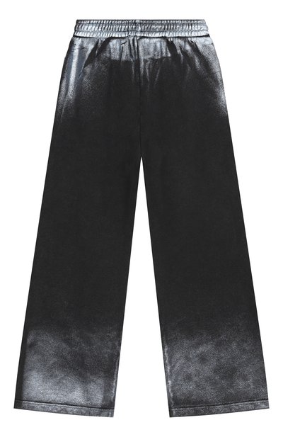 Хлопковые брюки, окрашенные в готовом виде, декорировали фирменной строчкой сзади и числовым кодом на одном из четырех карманов. Посадка модели со складками на коленях регулируется шнуром, продетым в эластичный пояс-кулиску.