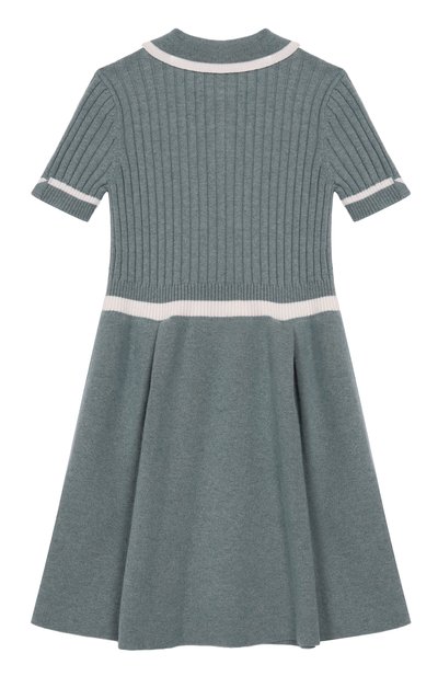 Платье-рубашку в бенгальскую полоску сшили из хлопкового сирсакера. Модель с перламутровыми пуговицами на укороченной планке украсили логотипом марки спереди. В боковых швах на расклешенном подоле спрятали карманы.