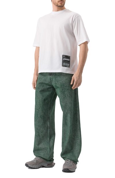 Хлопковую футболку с мелкими разрывами украсили брендированным принтом Lodge cabin спереди. Модель со спущенной линией плеч органично впишется в непринужденный образ.