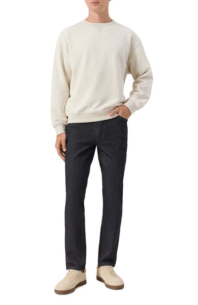 Для пошива джинсов прямого кроя использовали плотный хлопковый деним. Один из пяти карманов изделия украсили фирменным ярлыком. Модель со средней посадкой органично впишется в повседневный гардероб.
