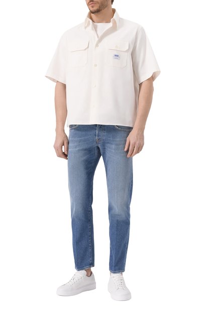 Рубашку Ebronn со спущенной линией плеч выполнили из хлопкового твила. Спереди модель украсили контрастным вышитым логотипом марки, которому вторит брендированная надпись сзади.