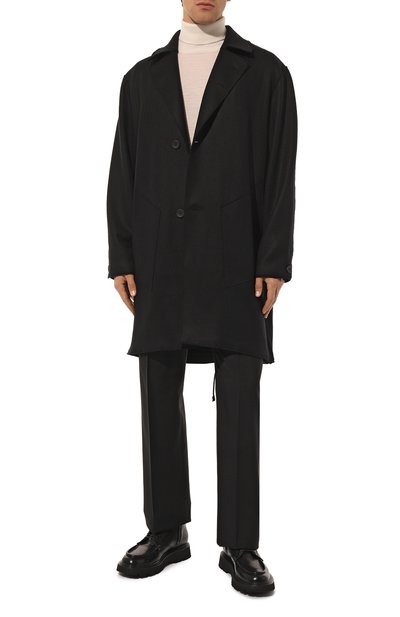 Однобортный плащ с длинной шлицей сшили из влагостойкой ткани на основе полиэстера с добавлением хлопка. Модель с прорезными боковыми карманами застегивается крупной пуговицей.