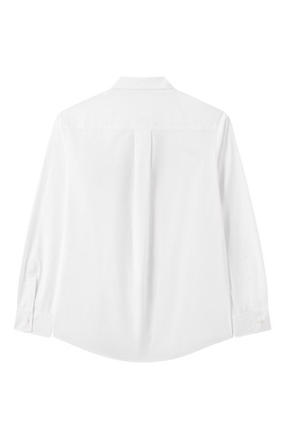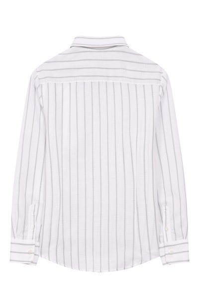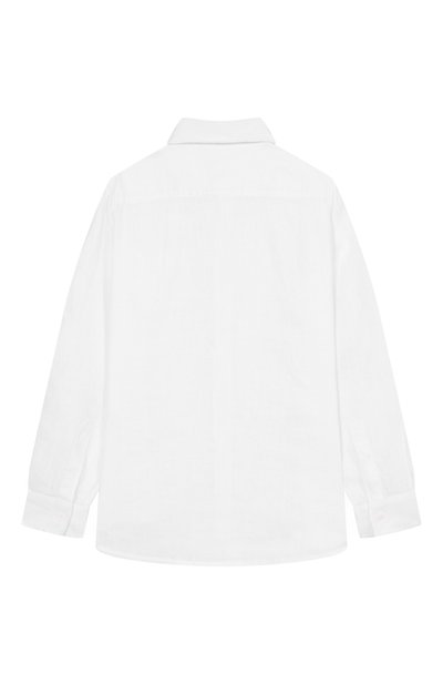Рубашка прямого кроя выполнена из микса льна и хлопка в полоску. Модель с закругленной кромкой украшена небольшим патчем с логотипом бренда.