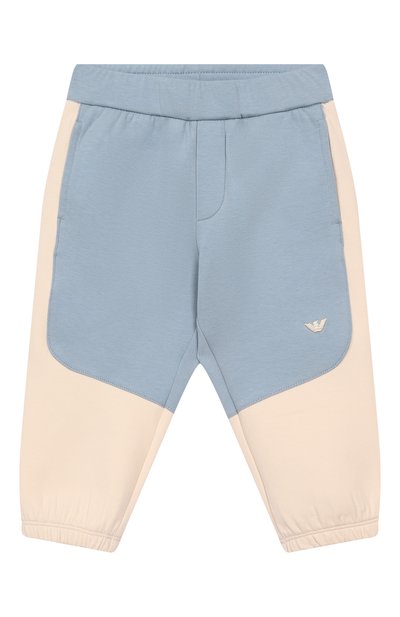 Джоггеры с ложной ширинкой, широким эластичным поясом и боковыми карманами выполнили из двойного джерси на основе хлопка. На левой брючине вышили фирменную эмблему.
