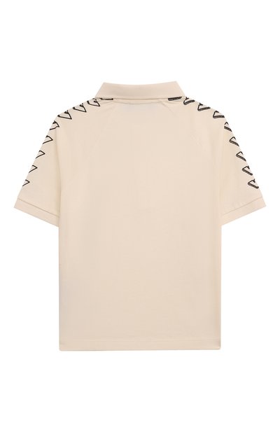 Поло с рукавами реглан и манжетами в рубчик выполнили из хлопкового джерси. Модель с брендированными пуговицами украсили вышивкой в виде тотемного орла в тон.