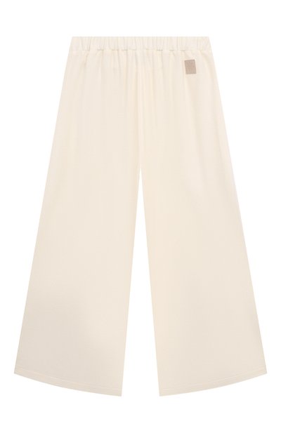 Свободные брюки с широким поясом-кулиской сшили из джерси на основе хлопка и модала. Фестончатым лампасам вторит контрастный силуэт тотемного орла, вышитый рядом с левым боковым карманом.