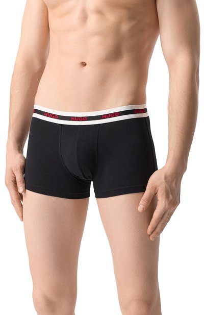 Боксеры с тщательно проработанными плоскими швами изготовили из эластичного хлопкового трикотажа. В комплекте — еще двое аналогичных трусов, отличающихся только брендированными узорами на жаккардовом поясе стрейч.