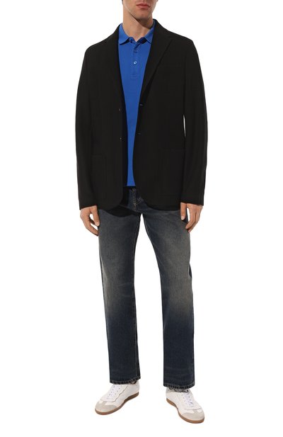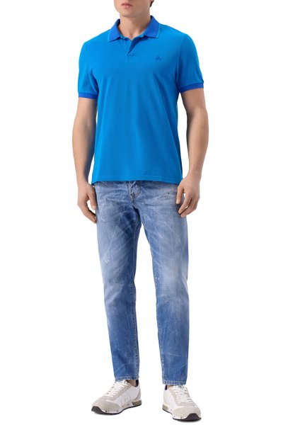Поло прямого кроя сшито из хлопкового пике. Модель с короткой пуговичной планкой и небольшими разрезами по бокам украшена эмблемой марки спереди.