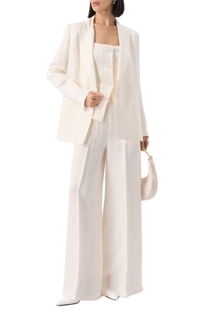 Однобортный приталенный жакет с широкими лацканами выполнен из эластичного хлопка с добавлением вискозы. Модель с двумя шлицами дополнена спереди нагрудным и тремя боковыми карманами с клапанами.