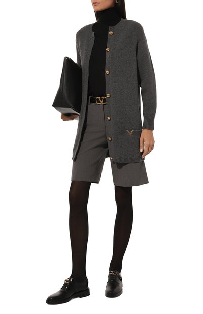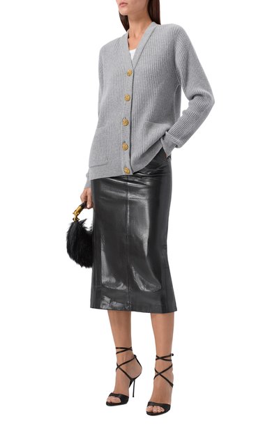 Укороченный кардиган с круглой горловиной найдет общий язык и с элегантной миди-юбкой, и с непринужденными джинсами. Модель с металлическими пуговицами в форме узла связали из буклированной пряжи на основе хлопка и шерсти.